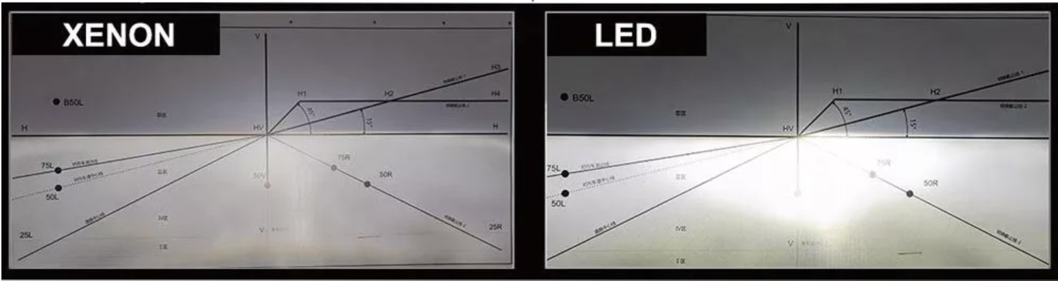 - Įjungus Xenon lemputės tenka laukti, kol lemputės sušils ir pradės gerai šviesti, LED šviečia maximaliu pajėgumu iš karto jas įjungus.