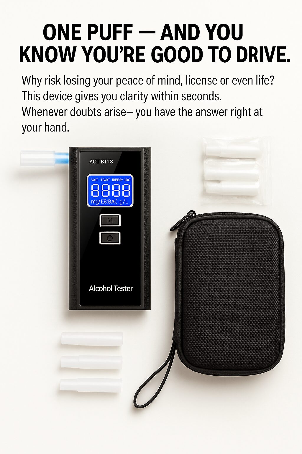 Įsivaizduokite, kad išvengiate streso ir abejonių po vakarėlio ar verslo vakarienės. Su ClearDrive X7 PRO visada žinosite, kad priimate teisingą sprendimą. Ar norėtumėte prietaiso, kuris suteikia aiškų atsakymą per kelias sekundes?